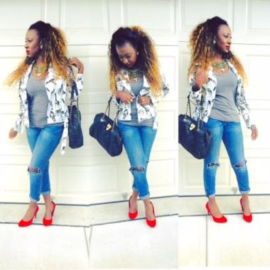 Last but not least, one of my favorite post by my daughter was the “Now This looks Like Beauty Right.” I used to be so afraid of wearing floral back in the day. It always reminded me of my grandmother’s table cloth and my goodness, I would never want to be a walking table cloth. That just isn’t cute lol. Over the years I’ve learned to embrace the floral print and be creative with styling against it. So when I saw the skirt, I was in love with the pop of colors and the cobalt blue top she paired it with..too cute. In addition, I love the variations of eye lash print fashion throughout the accessories.